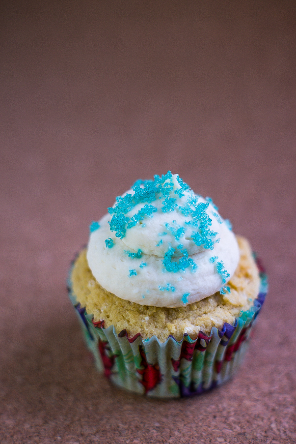 Prior to making these cupcakes I did some extensive research on flour replacements and narrowed my options down to almond flour and coconut flour. I’ve done quite a bit of gluten free baking, so almond flour wasn’t new to me, but I’d never had an occasion to try coconut flour, and figured this was a great time to do so. The biggest issue with baking with coconut flour seems to be making sure things stay moist. As a result, this recipe is heavy on both eggs and butter, but the cupcakes, while somewhat muffin-like, aren’t nearly as dense as you might imagine they would be.